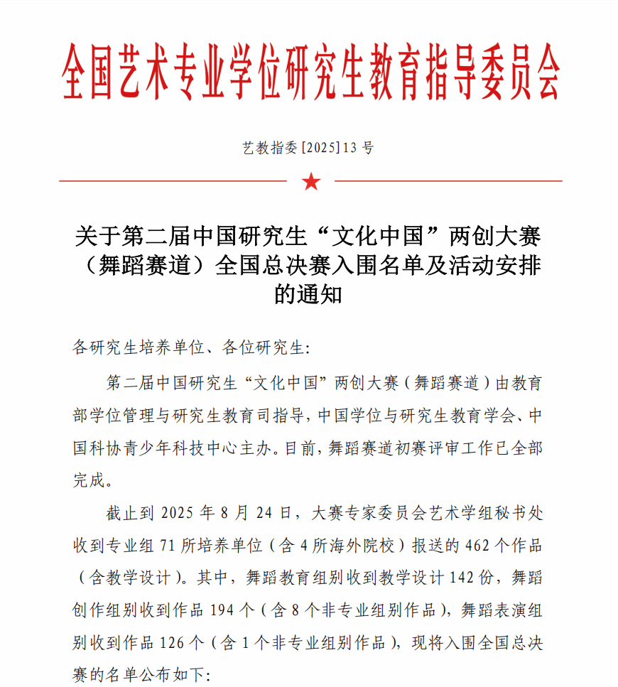 (截图来自“第二届中国研究生“文化中国”两创大赛(舞蹈赛道)全国总决赛入围名单公示”https://mp.weixin.qq.com/s/yk-q8pYIpzlWwSwrlQkyUg)
