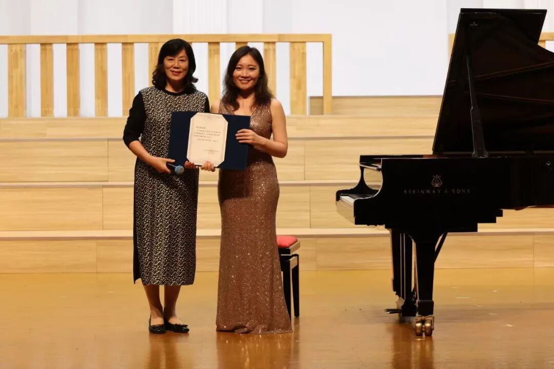 音乐会的尾声举行了荣誉授予仪式。受河南省音乐家协会驻会副主席李新现教授委托,河南省音乐家协会钢琴专业委员会主任陈放教授代表河南省音乐家协会钢琴专业委员会,向石文婷颁发“艺术发展交流大使”荣誉证书,表彰她作为河南籍钢琴演奏家在推动钢琴艺术交流与事业发展中所作的杰出贡献。